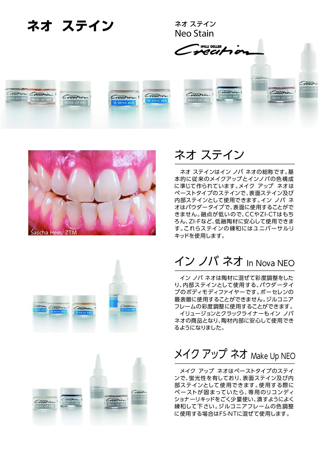 メイクアップネオはペーストタイプのステインで、表面ステイン及び内部ステインとしてご使用いただけます。