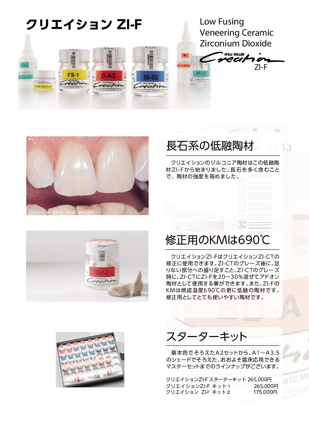 クリエイションのジルコニア陶材はこの低融陶材ZI-Fから始まりました。長石を多く含むことで、陶材の強度を高めました。